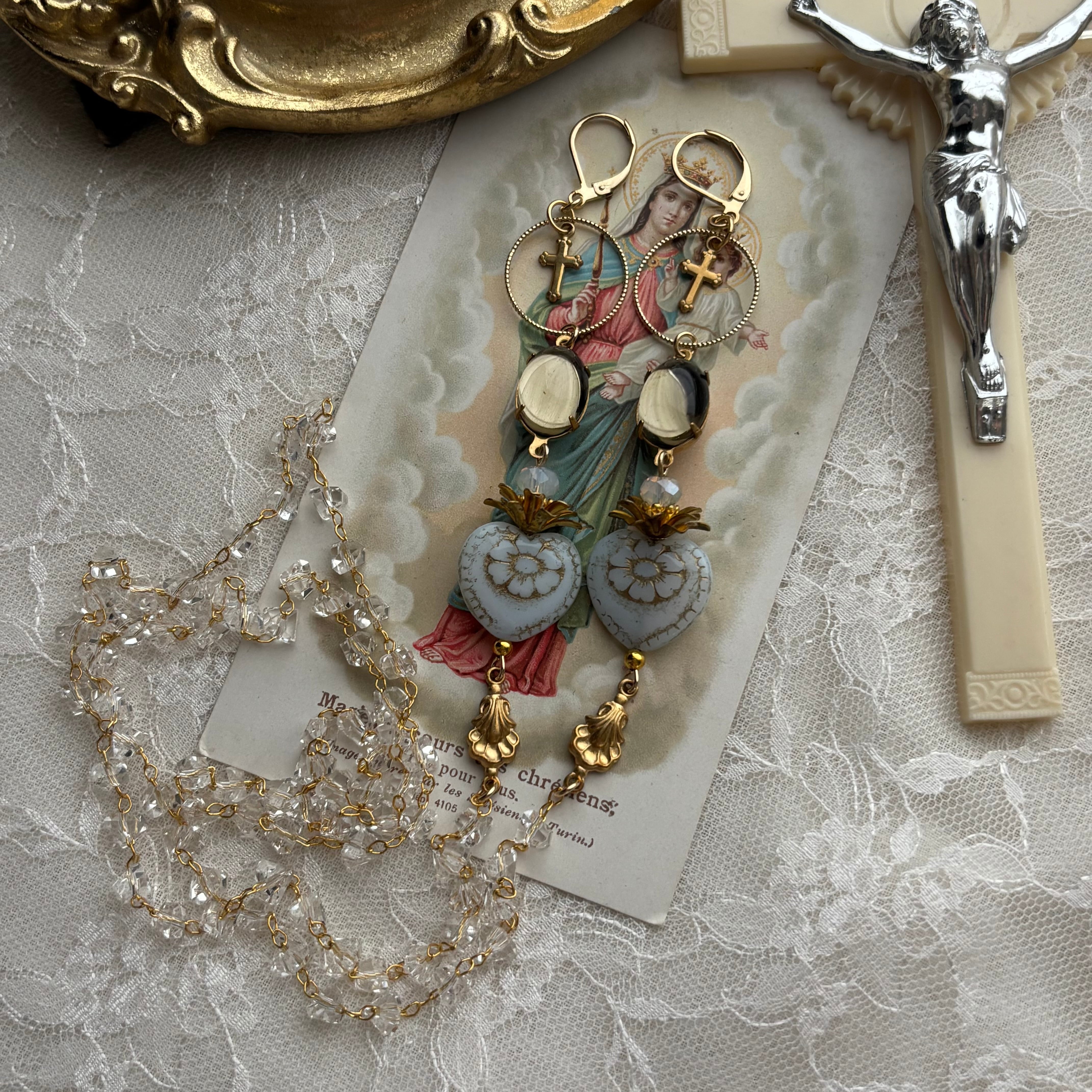 チェコガラスのハートゆらめくメガネ マスクチェーンです