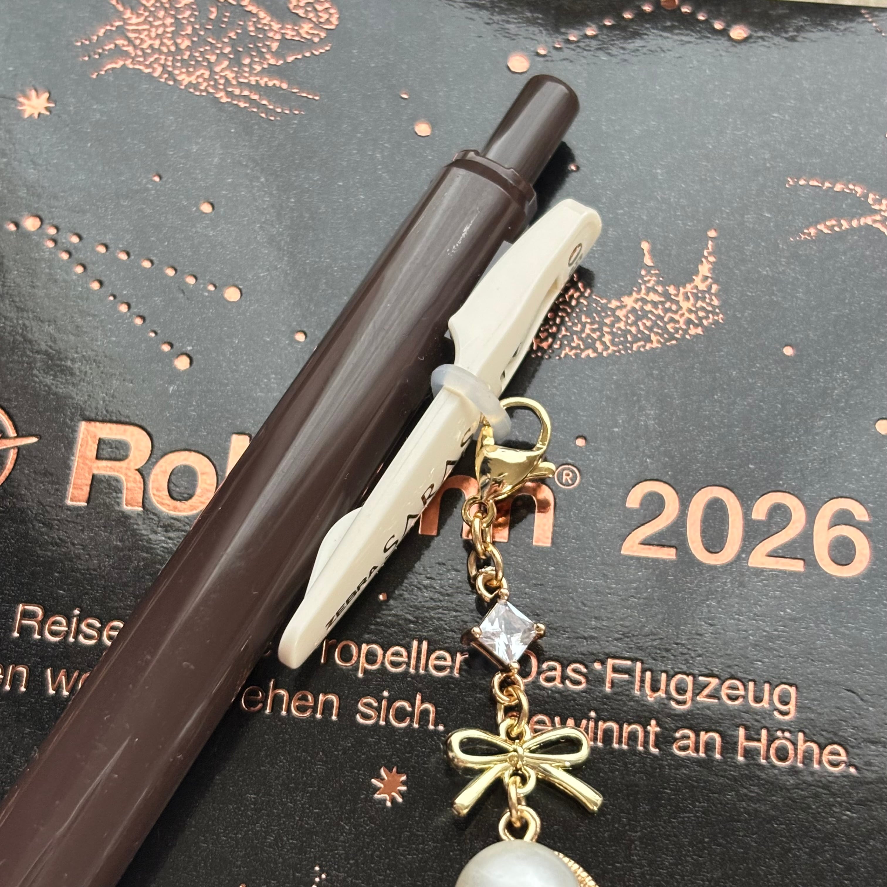 カニカンが引っかからないタイプのボールペンにもチャームを付けられる、便利なシリコンパーツ(写真4、5枚目参照)をご用意しました