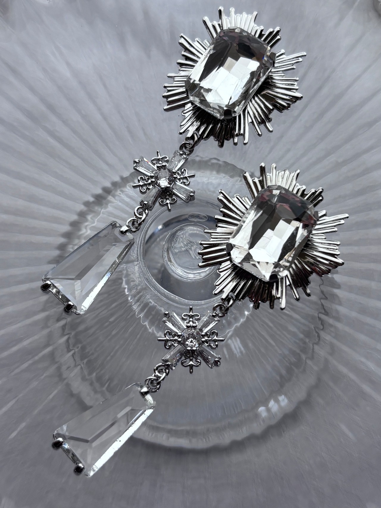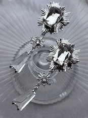 シルバーのカボションとガラスチャームの耳飾りです