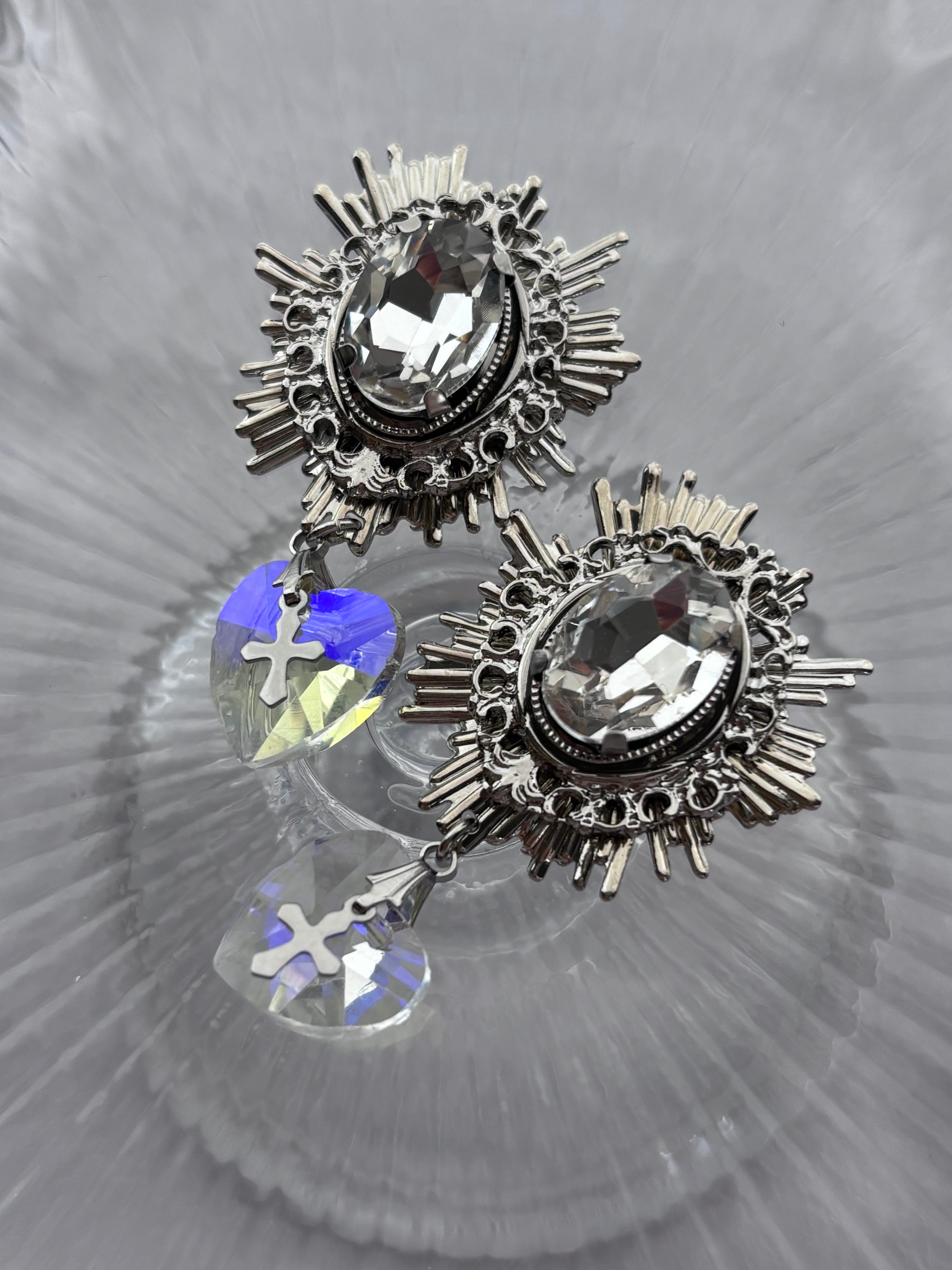 オーロラのハートが揺れる透明感が美しい耳飾りです